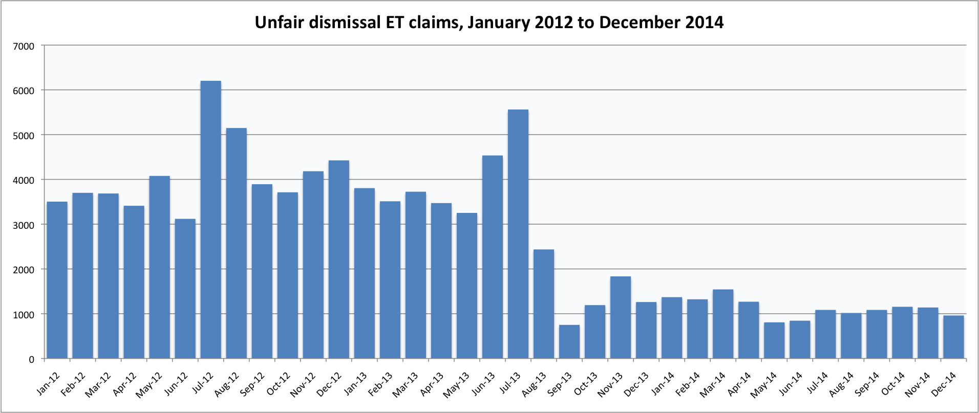 So, when Dr Cable told that somewhat partisan audience at the EEF in November 2011 that “we are in danger of getting away from the principle that [ETs] should be the last resort, not the first option”, he knew – or should have known – that the level of claims was in fact falling sharply. And, later, he would (or should) have known that this downward trend continued in both 2011-12 and 2012-13, as he and Ken Clarke (later Chris Grayling) finalised the ET fees regime for implementation in July 2013 – by which time the ‘level of claims’ was pretty much back to its lowest level since the turn of the century. In short, Dr Cable and his ministerial colleagues at the Ministry of Injustice could have ‘achieved’ a record low level of ET claims without even going into the office.